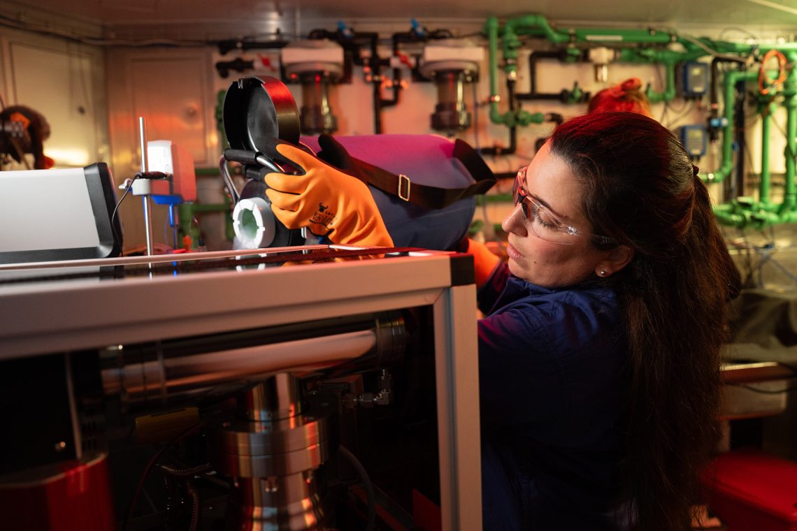 The first expedition, Animals as Living Bioreactors, in January-February was led by Dr. Anitra Ingalls of the University of Washington, U.S., and collected data in waters far off the east coast of South America, from Argentina to Brazil. The team studied the digestive systems of fish, jellies, and other animals that undertake the world’s largest migration, swimming every night from the depths to feed at the surface, then returning to the deep before daybreak to evade predators. Billions of animals perform this daily migration, and scientists do not yet fully understand the role they play in carbon export to the deep.